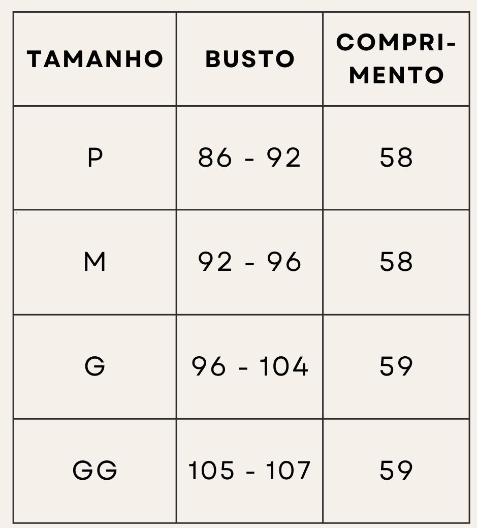 Tabela de Medidas: