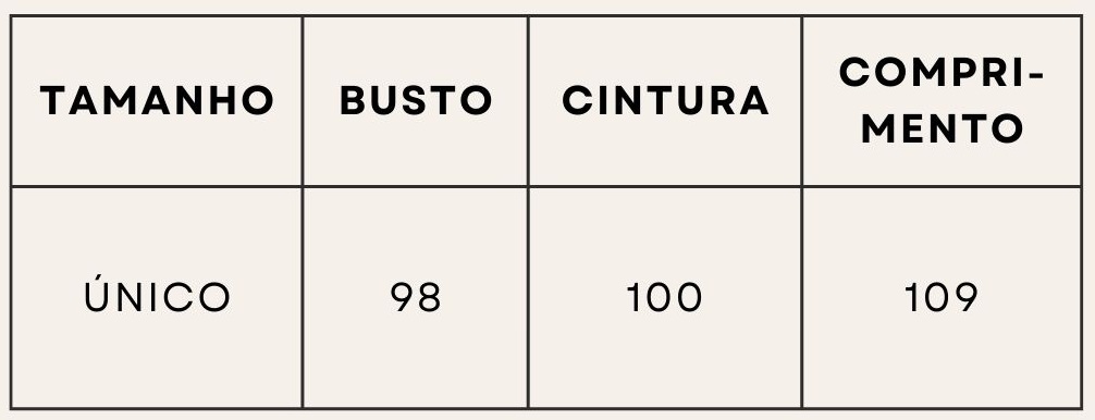 Tabela de Medidas: