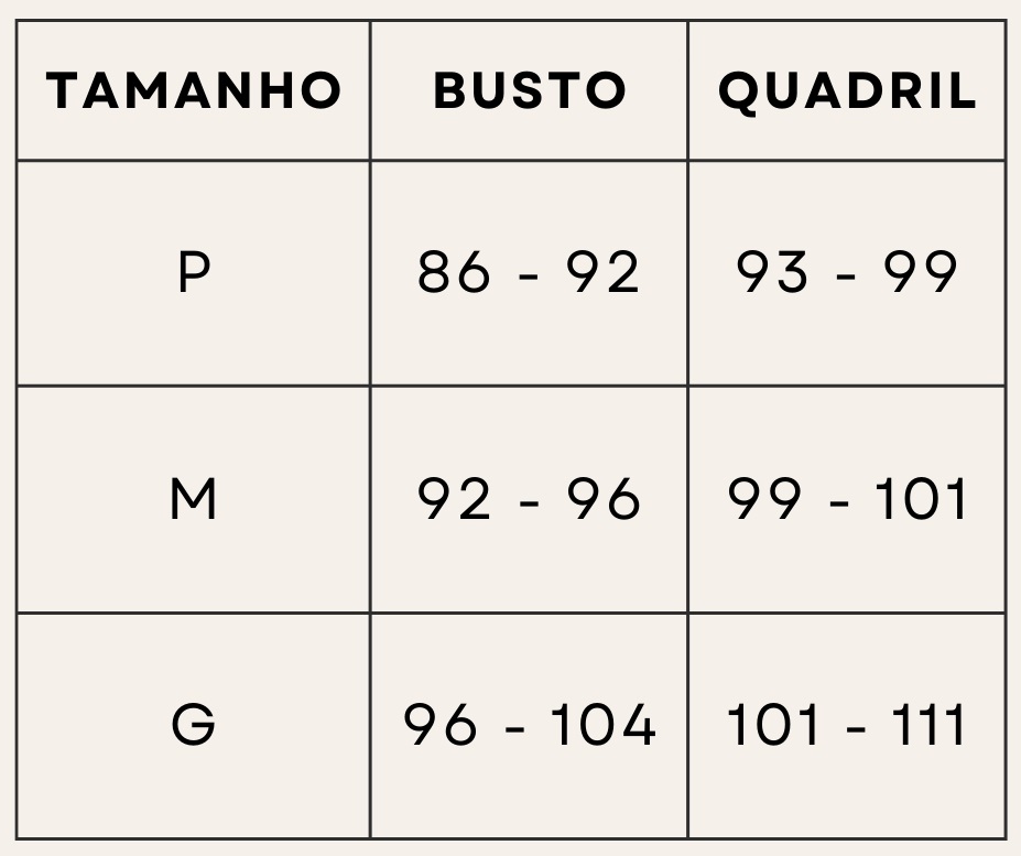 Tabela de Medidas: